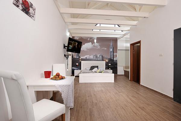 | טרקלין אירוח - | טרקלין אירוח יוקרתי, פינת ישיבה סלונית מהודרת, מסך LCD 50" עם חיבור ללווין (YES), שולחן בר יוקרתי, פינת אוכל המותאמת ל- 12 סועדים |